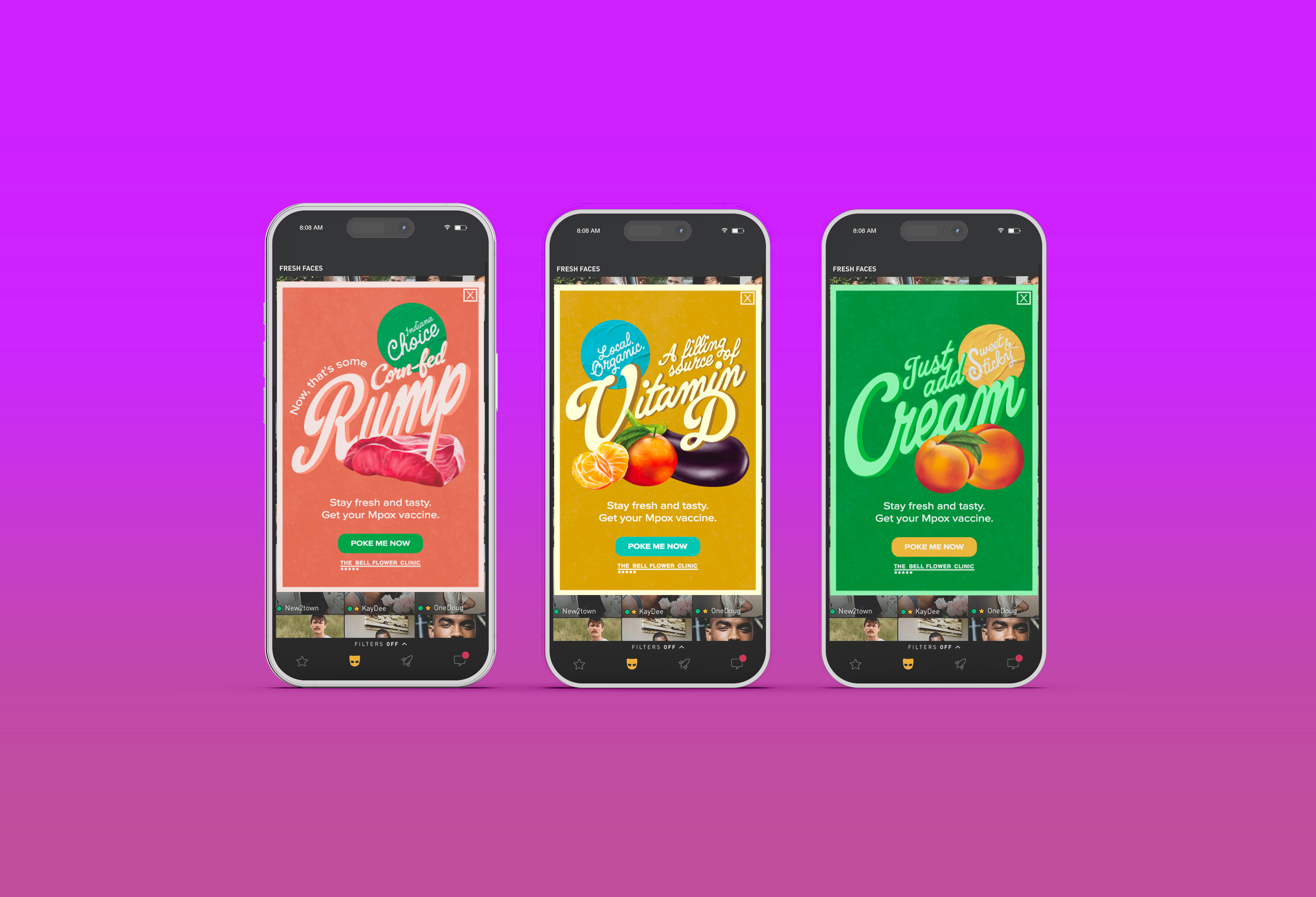 Our research revealed there was a bit of a stigma in the LGBTQ+ community around Mpox with a connection to “being unclean.” Also, the lesions can be highly visible on the face which made the infected person feel embarrassed in social and workplace situations. It was this insight that led us to the campaign theme of “Stay Fresh and Tasty.”