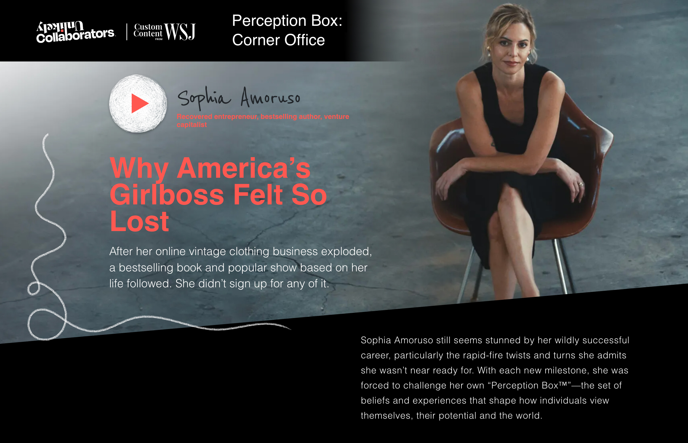 Recognizing the transformative potential of this idea, Custom Content from WSJ partnered with Unlikely Collaborators to create "Perception Box: Corner Office," a groundbreaking video series exploring the defining moments that shaped three of today’s most influential business leaders.