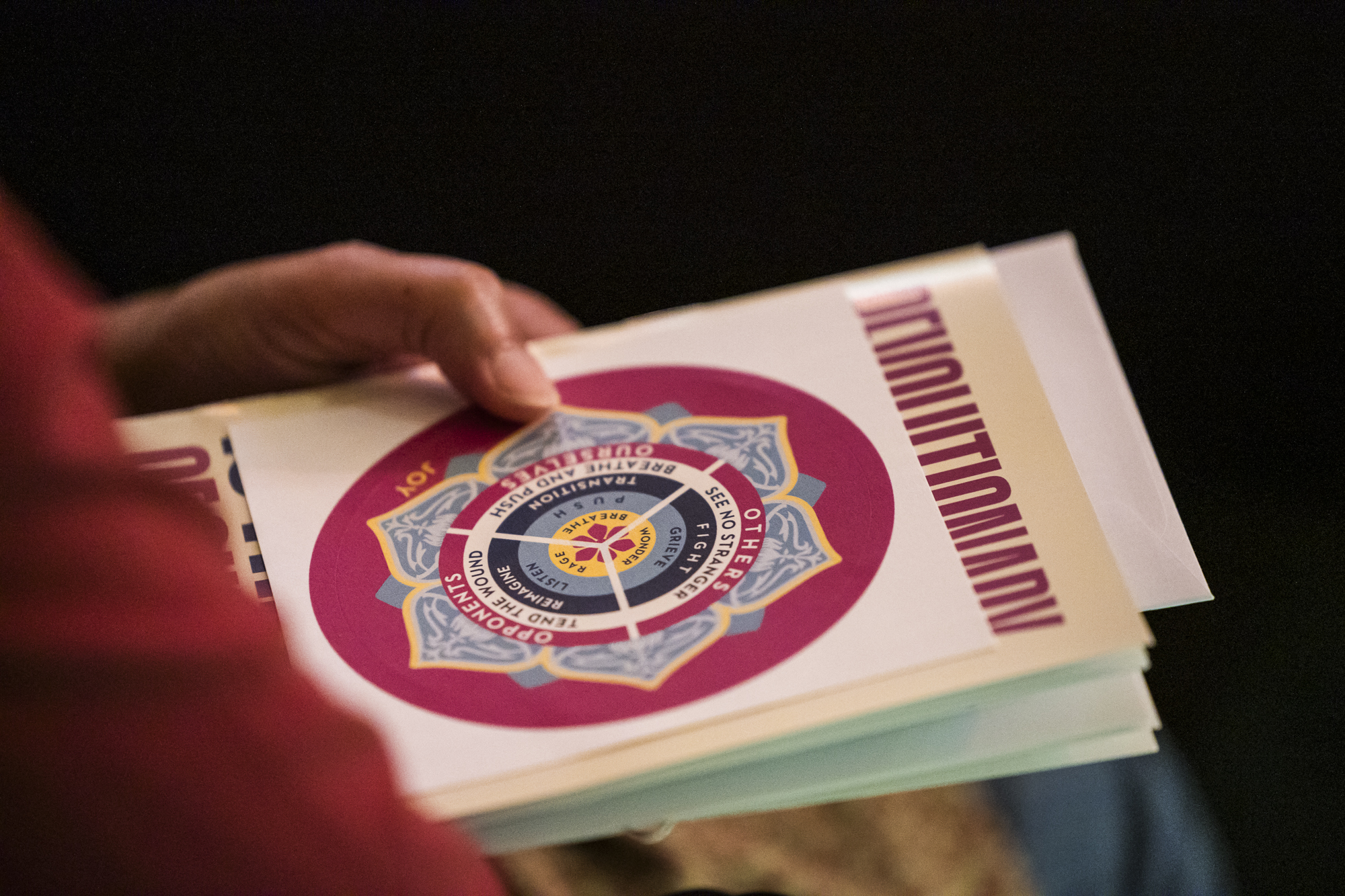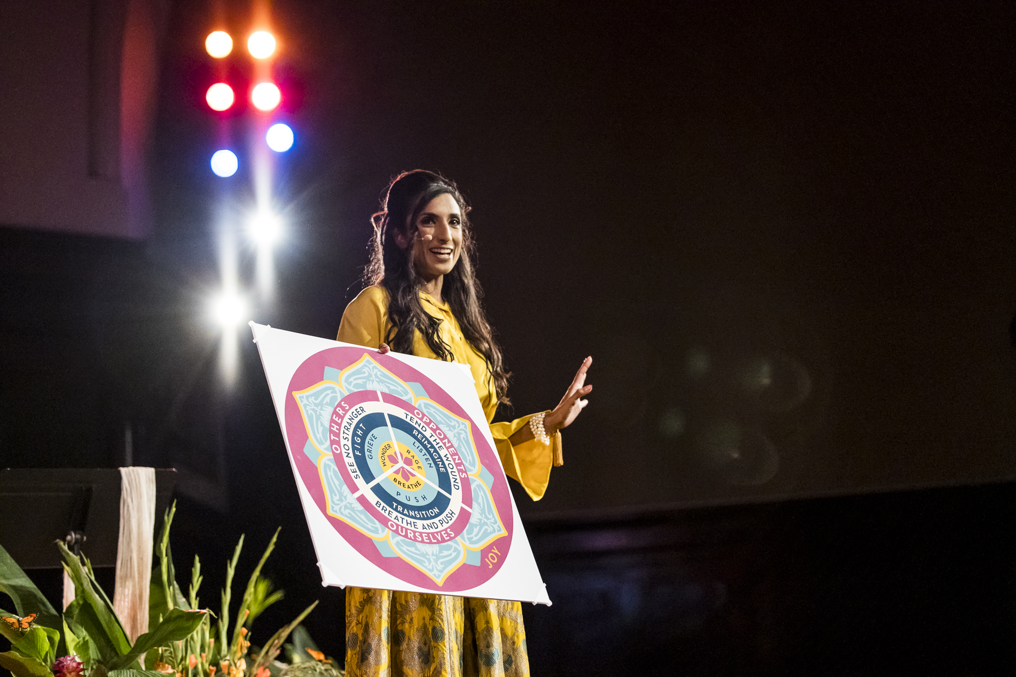 The Revolutionary Love Compass, designed by artist Shepard Fairey, was given to every participant, and Valarie Kaur led an interactive session teaching audience members how to use the compass as a tool to navigate personal and collective transformation.