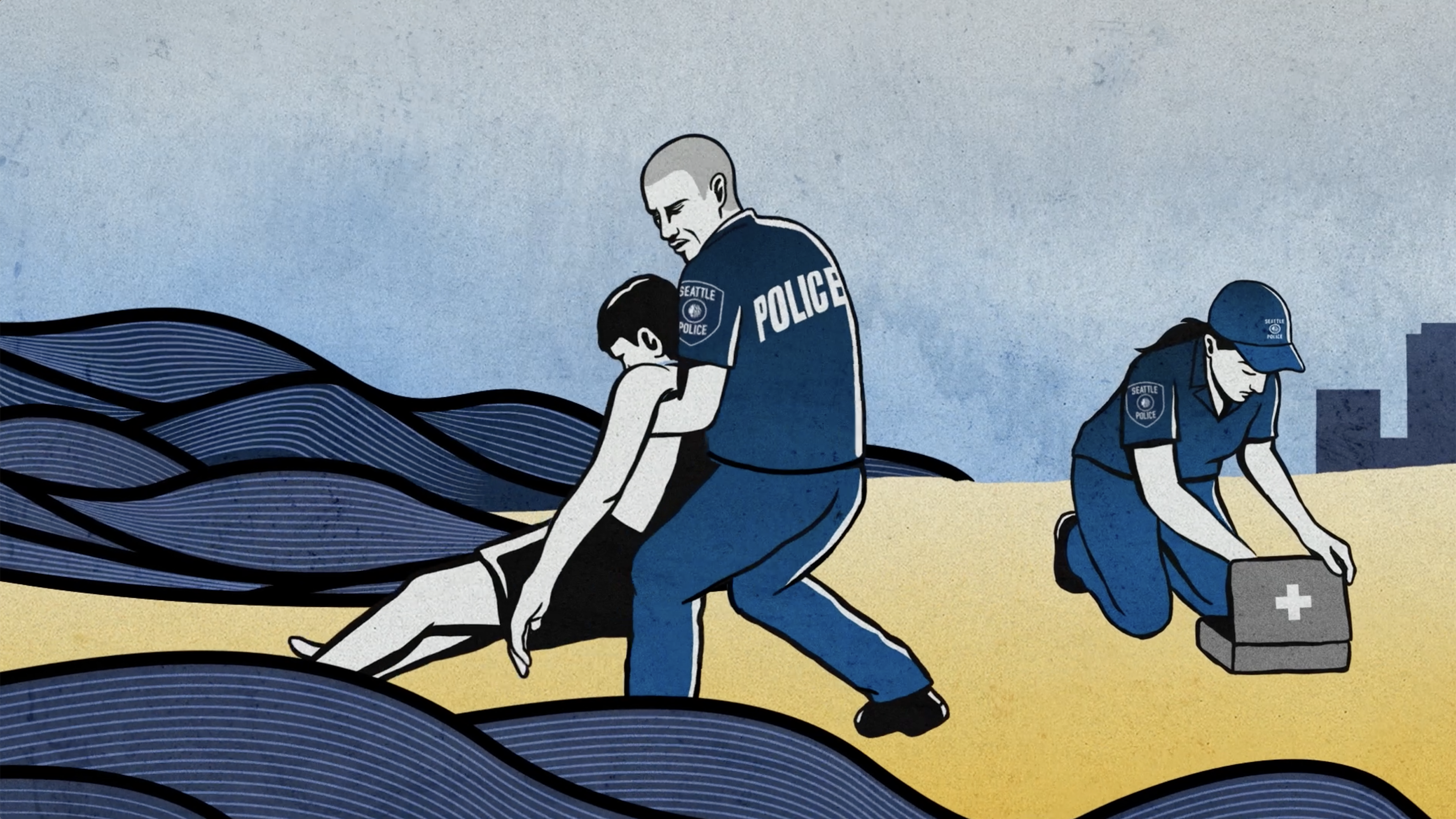 The key creative tentpole component of the campaign was All Clear – Stories of the Seattle Police Department, a long-form animated video series that resonated deeply with audiences on platforms they were already engaging on. Structured in the style of a true crime series, each episode took a cinematic approach to real SPD cases, delivering high-stakes narratives that revealed the humanity, bravery, and impact behind the badge. The series featured three episodes, each with a different SPD specialty officer and case. “The Rescue” followed a Harbor Patrol officer’s effort to save a drowning man. “The Negotiation” focused on a Crisis Response officer managing a tense hostage situation, while “First on the Scene” depicted a new Patrol officer saving an overdose victim. The series was distributed on YouTube and Meta, and supported by shorter teasers and audio narratives, including placements on popular true-crime podcasts, meeting audiences where they naturally engage with this genre.