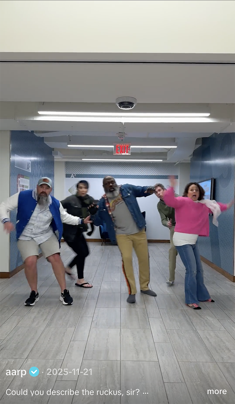 Instead of traditional influencer takeovers or standalone spots, these creators appeared across our established video franchises, surprising and delighting our audience by showing up where they least expected: right in the middle of the videos they already loved. We posted the videos on our TikTok account, leveraging the collab feature to reach each creator’s audience as well. This approach not only wove the creators’ humor and authenticity into the fabric of our brand, but also organically introduced their loyal followers to the AARP community, fostering a sense of belonging and shared experience. Their unique comedic styles and relatable Gen X perspectives brought a new layer of engagement and made every episode feel like an event.