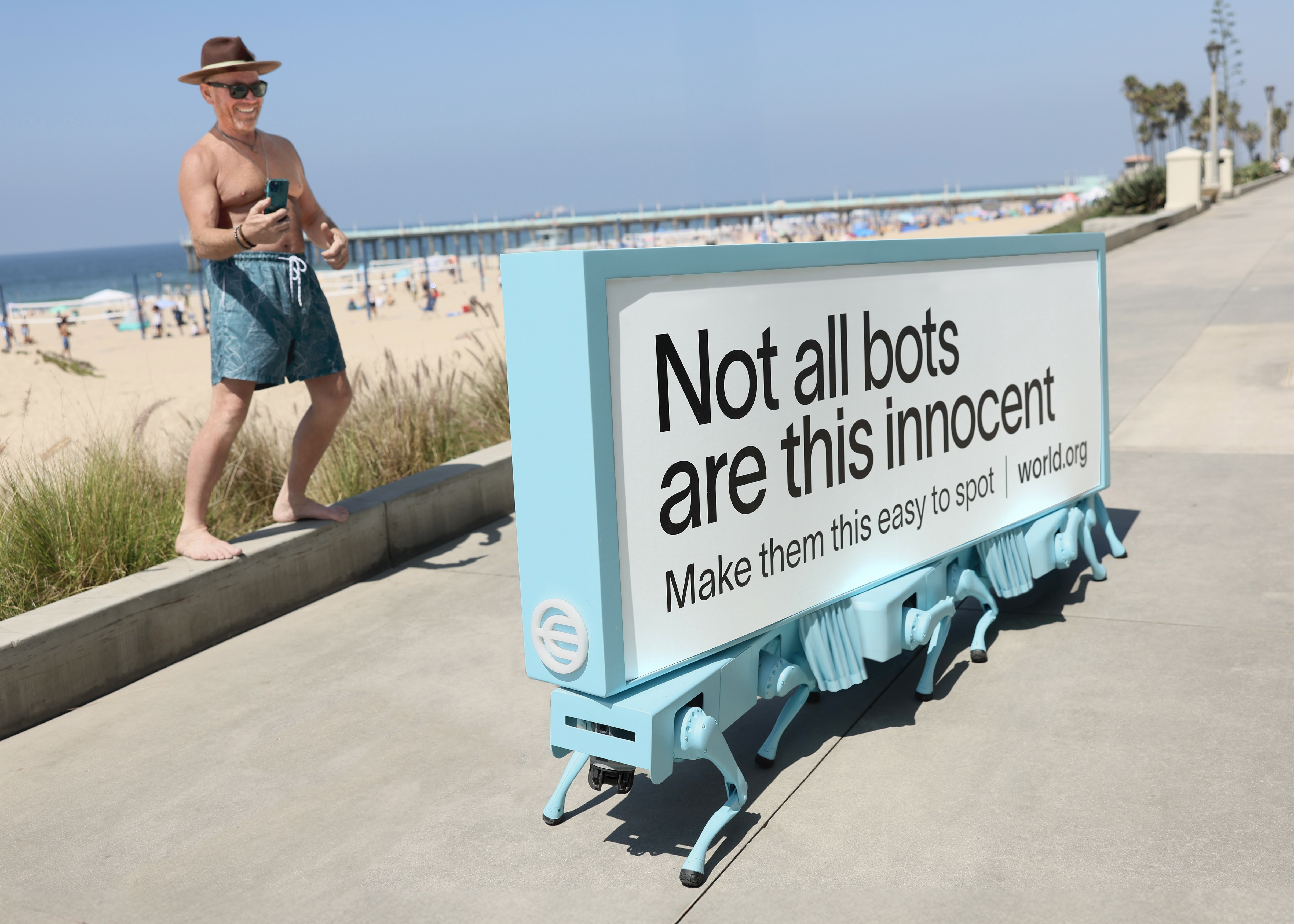 The first activation took place at Manhattan Beach on September 6, launching alongside World’s “No Bot Shop”, a one-day pop-up in Los Angeles designed to give high-demand items back to real humans.