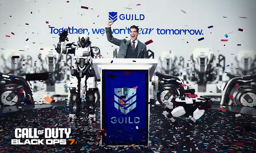 Black Ops 7 is set in the near future of 2035. But, to establish an antagonist that would resonate with our fans at an authentic level, we pulled directly from current cultural tensions and real-world fears. Namely, the mistrust and failed promises of Big Tech and the anxiety over AI. Enter: The Guild, the hot new military tech company, and main antagonist, from the game.