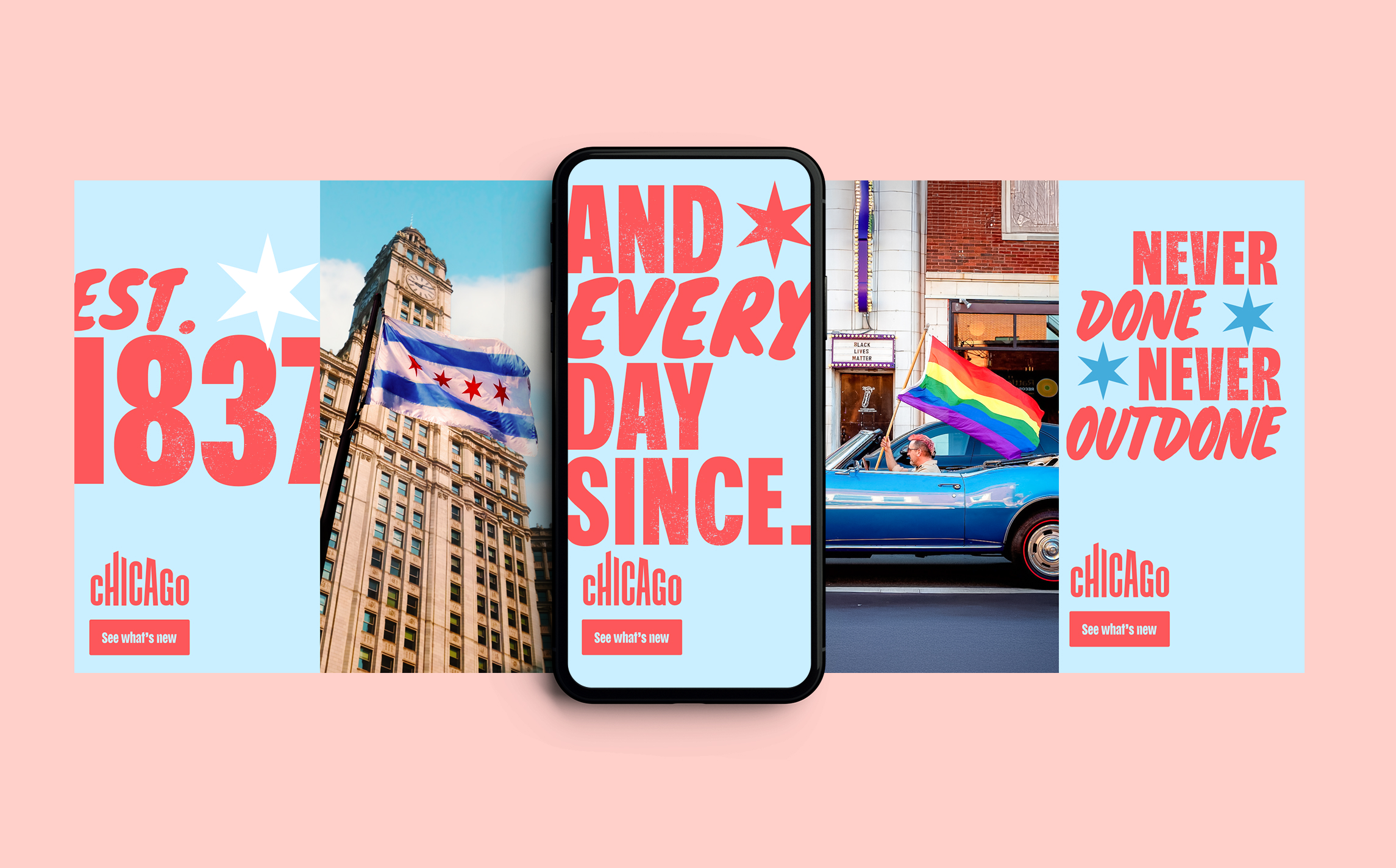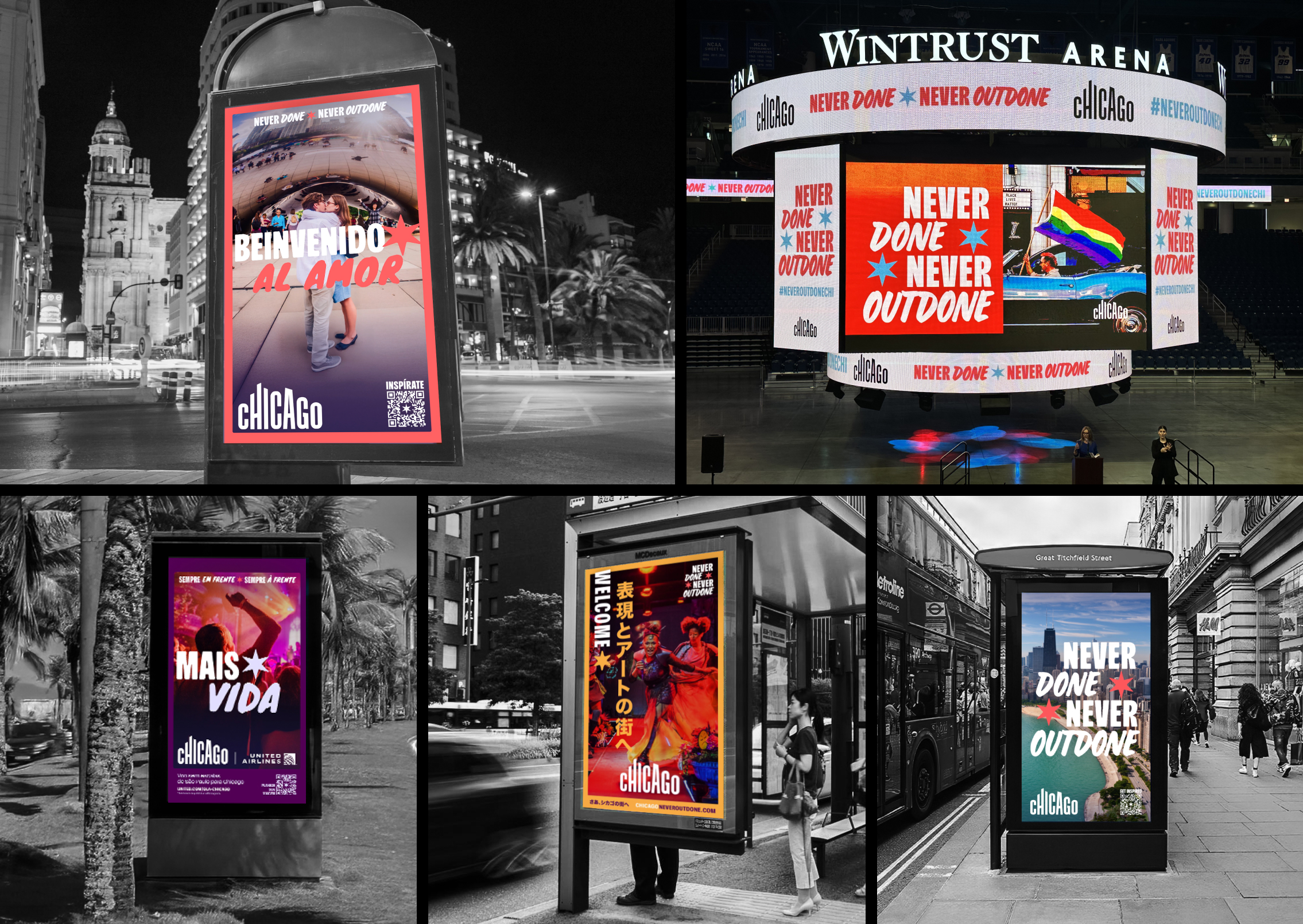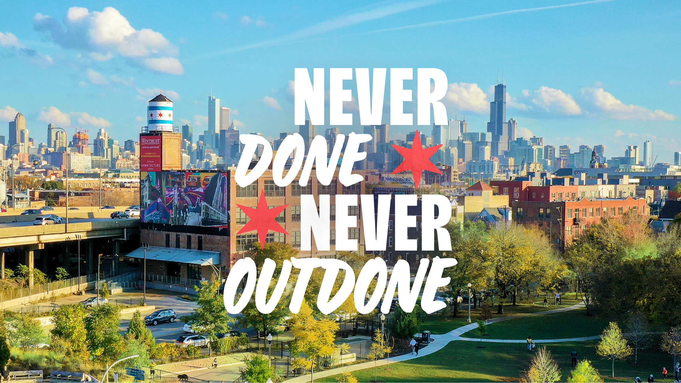 Guided by the sentiments of resiliency, city pride, and constant innovation, "Never Done. Never Outdone." is a creative platform that celebrates Chicago’s relentless spirit and unmatched culture. It's brought to life through bold, authentic messaging, ownable Chicago-inspired graphics, and unscripted photography moments.