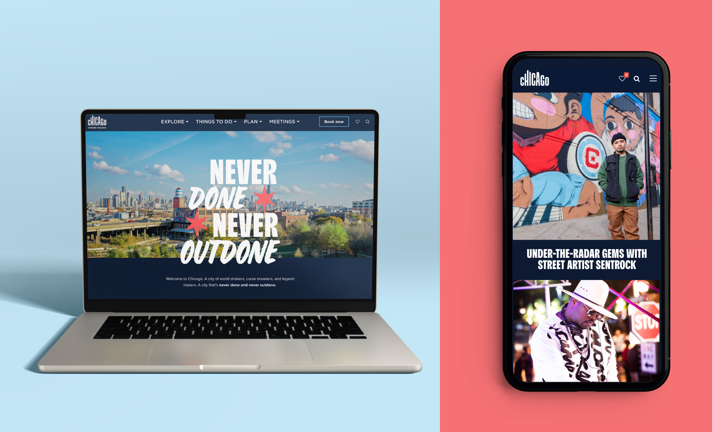 Launched summer 2025, "Never Done. Never Outdone." is a campaign invites travelers to get to know the real Chicago by showcasing our welcoming spirit and hardworking ethos, featuring culture makers and residents from across our 77 neighborhoods. Along with a new campaign, we also elevated Choose Chicago’s brand visual identity and messaging.
