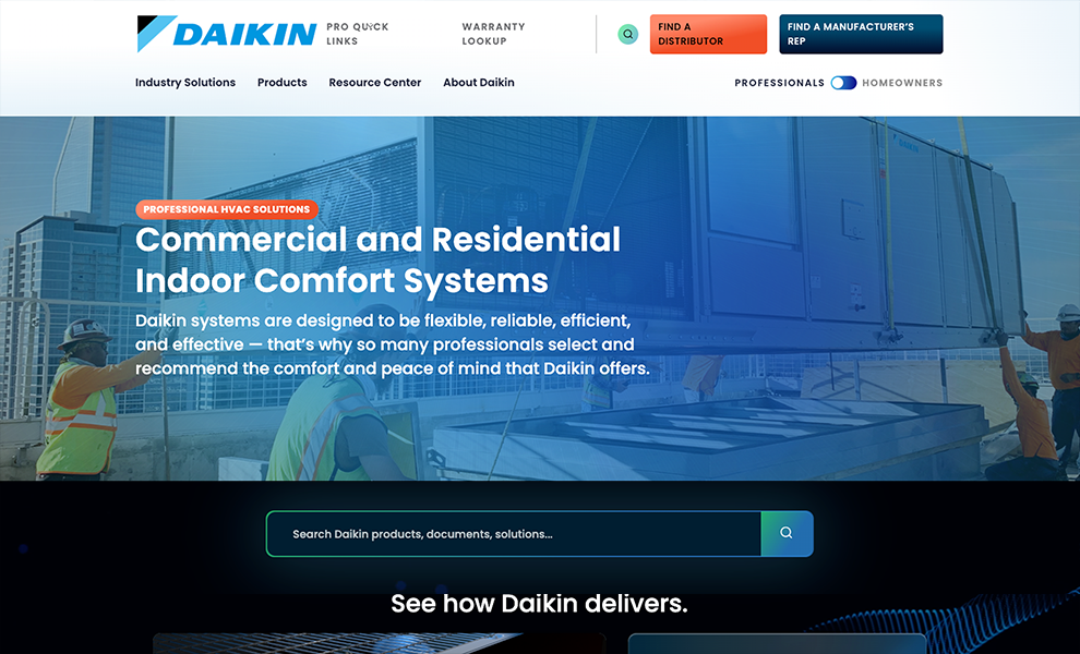 The task was to build a single website that resonated with every corner of Daikin’s audience ecosystem: consumers seeking understanding and clarity, dealers and professionals seeking sales tools, and partners seeking confidence in the brand’s expertise. The new DaikinComfort.com does more than surface information; it establishes purposeful pathways for both transactional and relational engagement, helping users interact with the brand seamlessly at every stage of their buying journey.