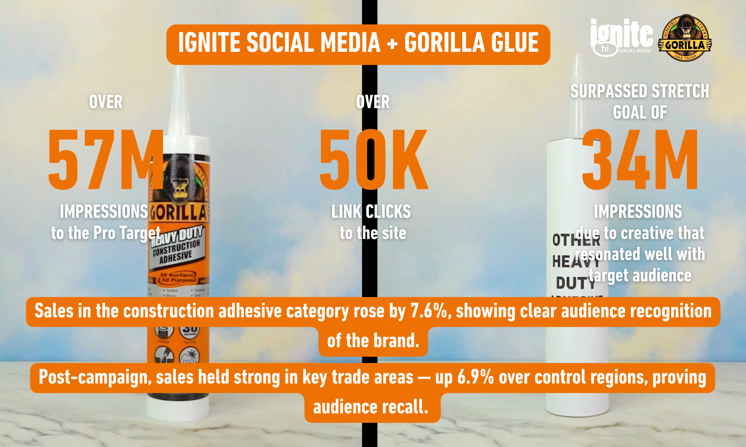 The campaign successfully delivered strong brand awareness and recall among professional audiences across the three targeted trade markets. Combined brand and influencer efforts generated 57 million impressions, ensuring sustained visibility among high-value Pros and significantly expanding recognition of Gorilla Glue’s Heavy-Duty Construction Adhesive line.