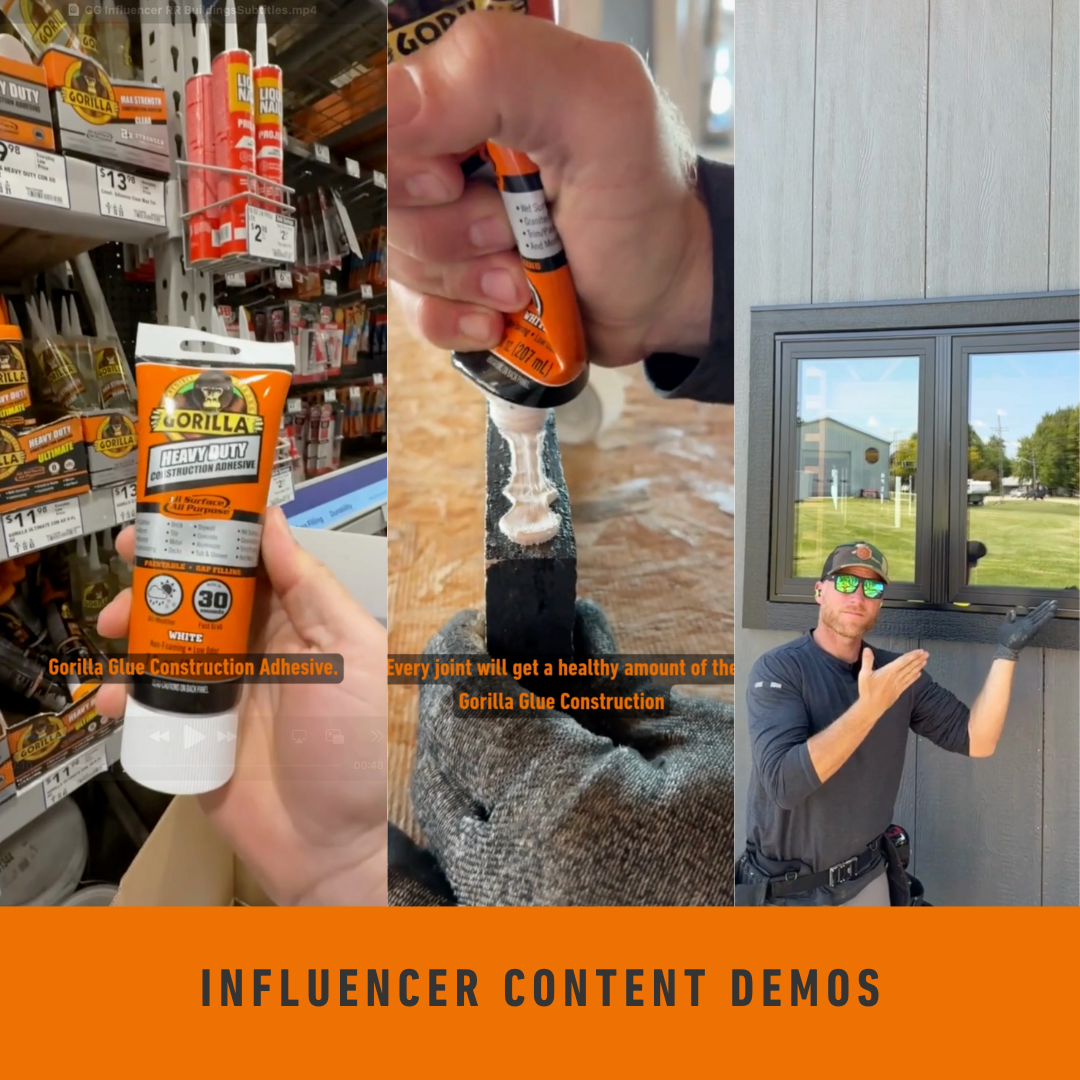 Ultimately, the goal was to increase brand awareness, strengthen brand preference, and reinforce Gorilla Glue’s credibility among high-value professional audiences through a unified, digital-first approach across social and influencer channels.
