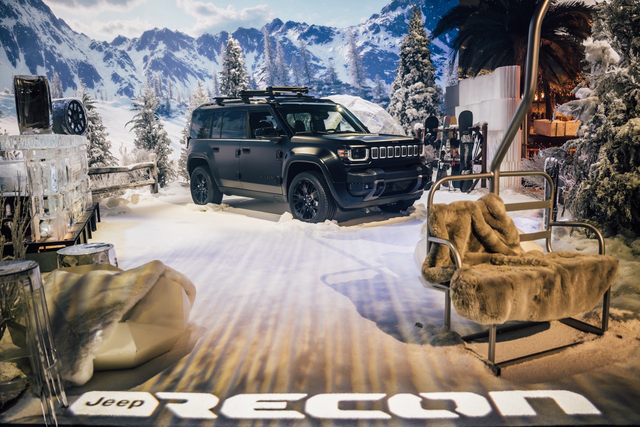 Activations were integrated into each setting: a “Jeep hair” Glambot® moment and sand sculpture highlighted the Recon’s cargo space and open-air freedom; a climbable rock ramp demonstrated approach angle; a life size snow globe highlighted safety features; a 24” deep live pool showcased water fording capability; and dynamic lighting and MOPAR accessory displays demonstrated the vehicle’s utility for everyday, city life.