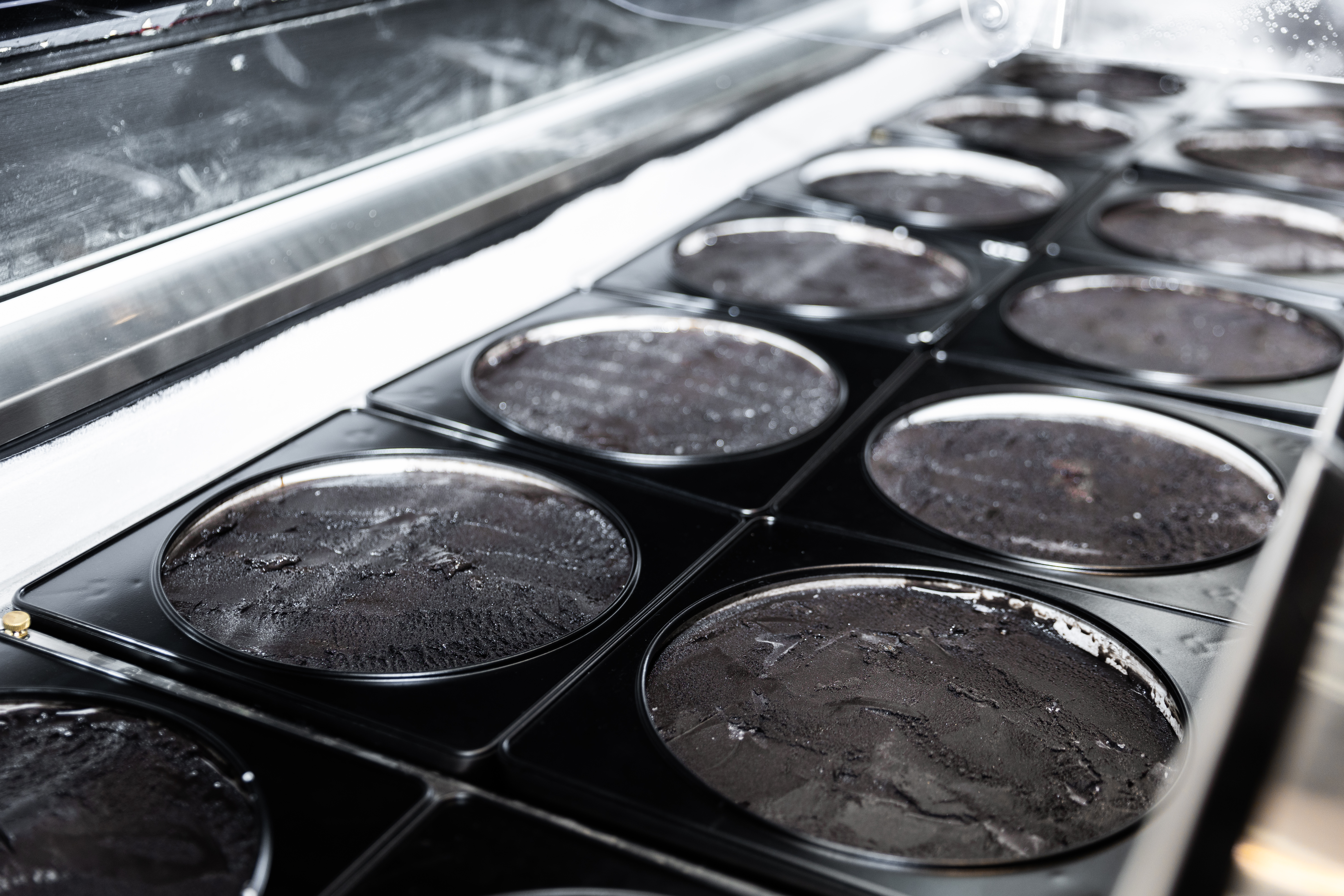 At the center of the collaboration was an all-black ice cream—made without activated charcoal or artificial coloring—that was as delicious as it was visually shocking, an edible work of art. Ribbons of tart cherry balsamic jam (dyed black with all-natural ingredients) and creamy espresso fudge were encapsulated in a black cocoa ice cream, but nearly indistinguishable from the ice cream itself. Stripping the traditionally vibrant ice cream experience of all color made the ordinary suddenly unfamiliar, creating a sensory experience that made you feel everything more deeply—the taste, the texture, the emotion—as the flavor unfolded with each bite.