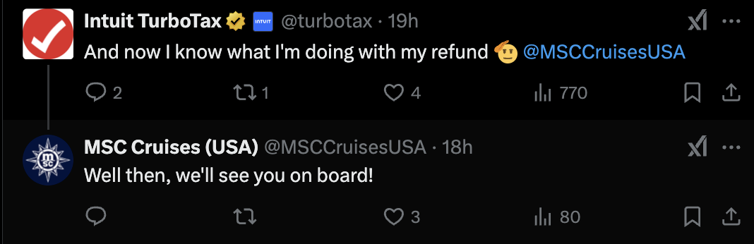Earned media impact was equally powerful. Through strategic brand-to-brand interactions, MSC Cruises generated 6.6 million earned impressions from advertiser engagement alone, along with 2,900 brand mentions, a 152% increase over daily averages. Owned Super Bowl content drove more than 551,000 impressions and 24,000 engagements.