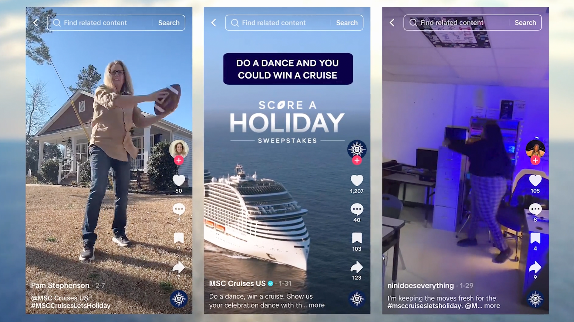 In the lead-up to Game Day, MSC Cruises rolled out teaser content across platforms featuring Drew Barrymore and Orlando Bloom, building anticipation while reinforcing the “Let’s Holiday” brand world. Ten days ahead of the game, the brand launched a TikTok dance sweepstakes designed to tap into platform-native behavior and invite audiences to participate directly in the campaign. Winners were revealed live during each quarter of the Super Bowl, creating a reason for audiences to stay engaged with the brand throughout the game.