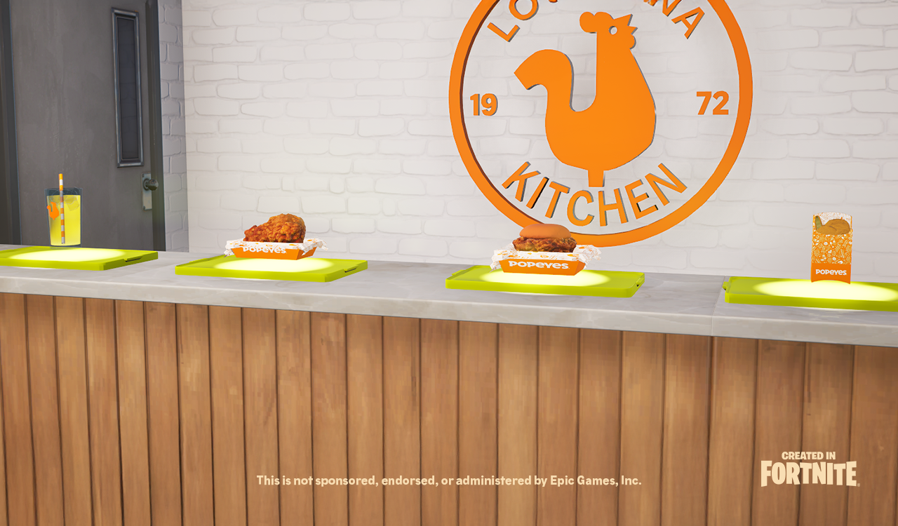 We partnered with GoodGamers to build a fully immersive 1:1 replica of a Popeyes restaurant inside Murder Mystery, one of Fortnite's most-trafficked islands with millions of existing players.