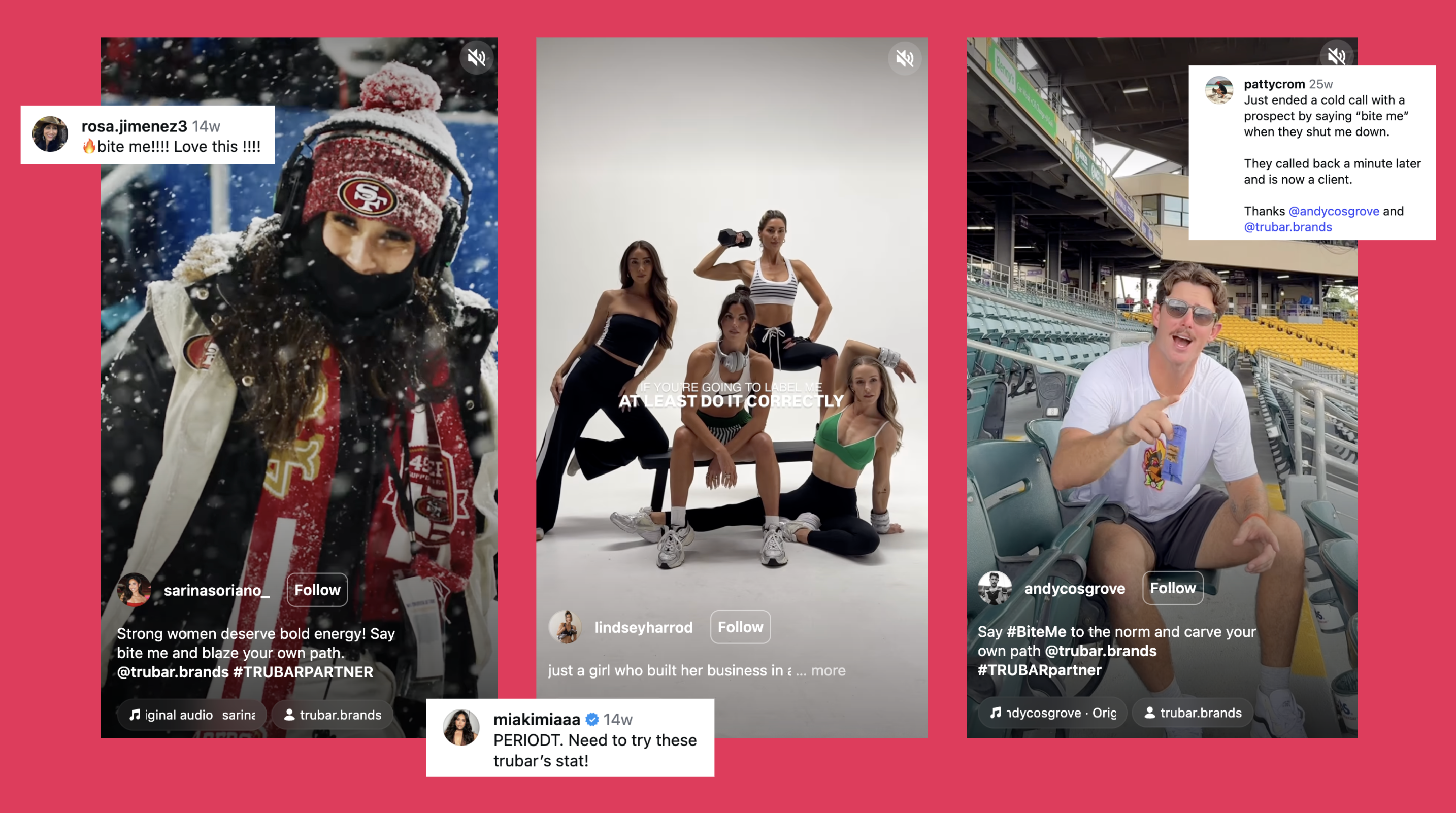 On social and through influencers, BITE ME became a playful pushback against outdated nutrition rules and unsolicited opinions. We worked with strong-willed creators, entrepreneurs, and everyday people who embody that mindset, letting them define what BITE ME means in their own words.