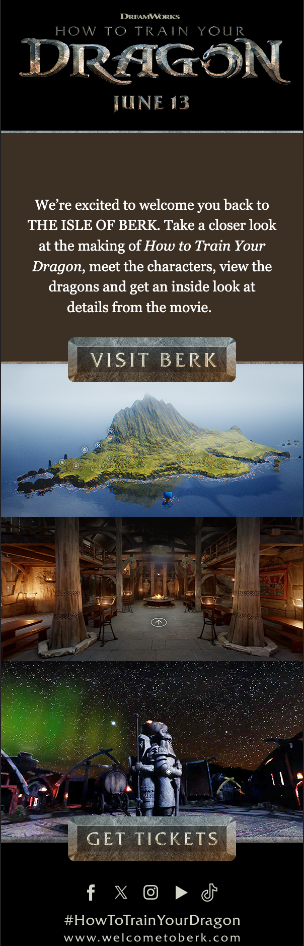 To capture the blockbuster action, breathtaking visuals & emotional storytelling that defines the How to Train Your Dragon series we were tasked with crafting a definitive experiential introduction to the 2025 live-action reimagining. Our Powster vikings set out to build welcometoberk.com, an interactive microsite designed to bridge the emotional nostalgia of lifelong fans with the curiosity of a new generation.